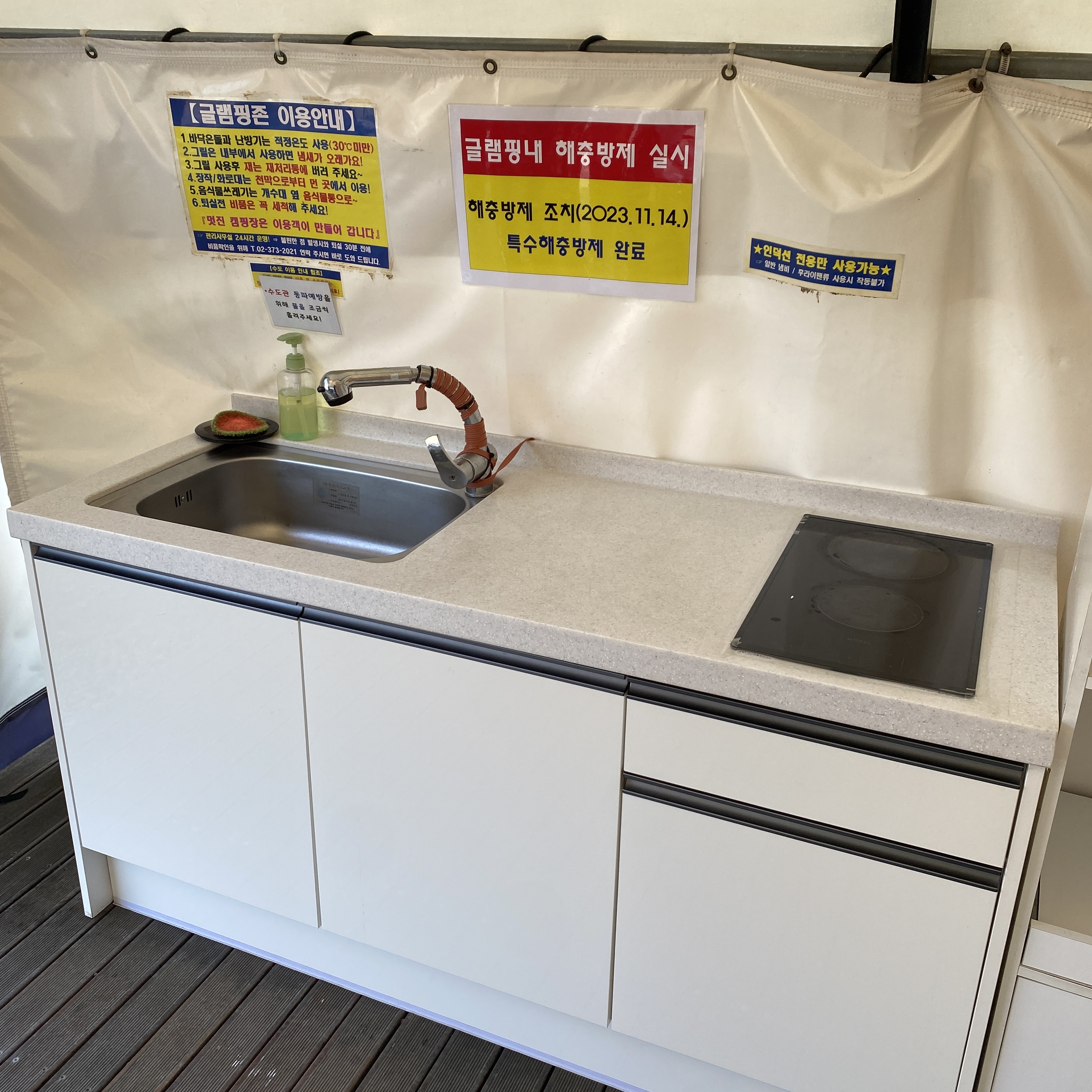인덕션과 싱크대도 갖춰져 있어 손쉽게 설거지를 할 수도 있다.