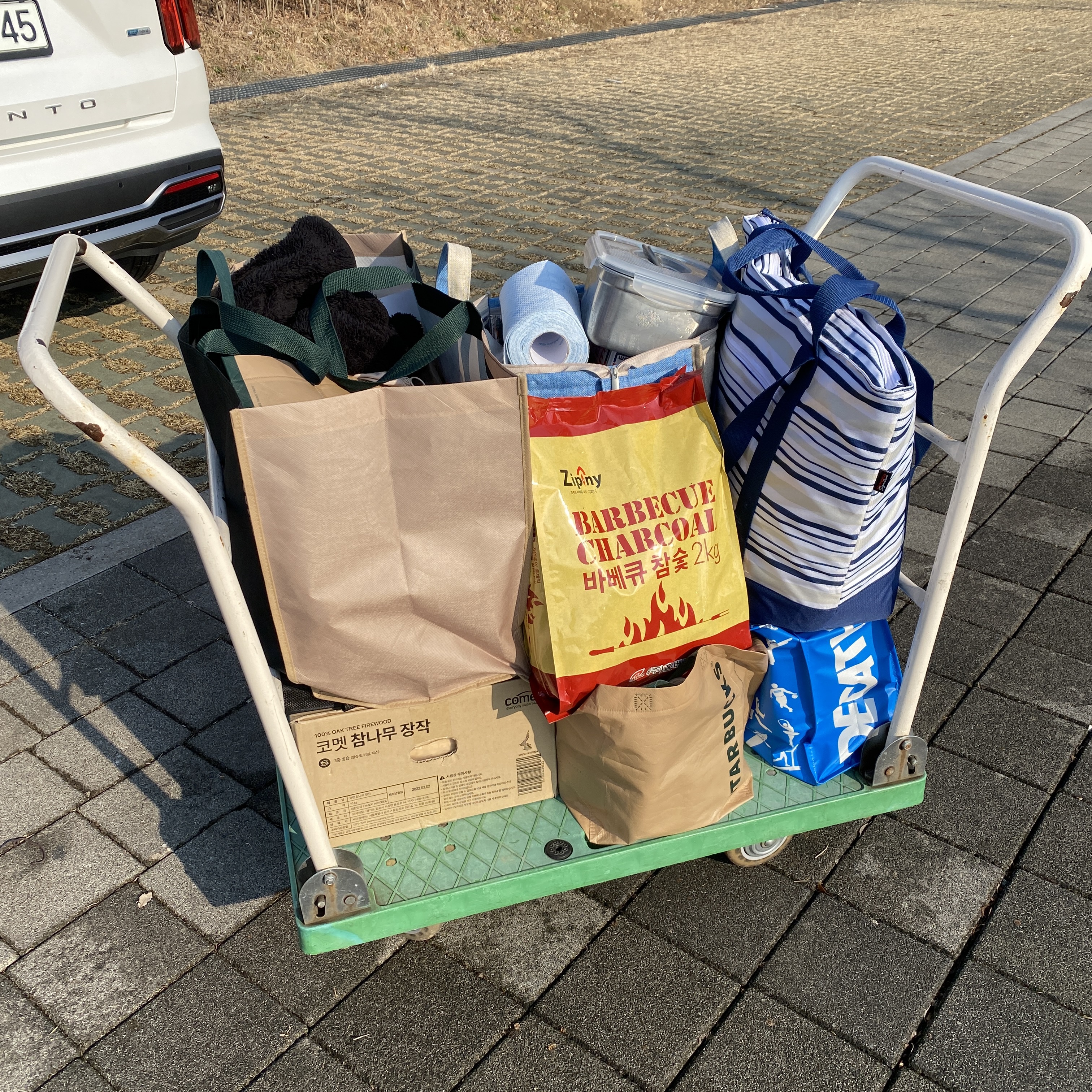 글램핑을 이용하러 온 거라 캠핑 장비를 안 챙겼음에도 짐이 한 보따리였다.