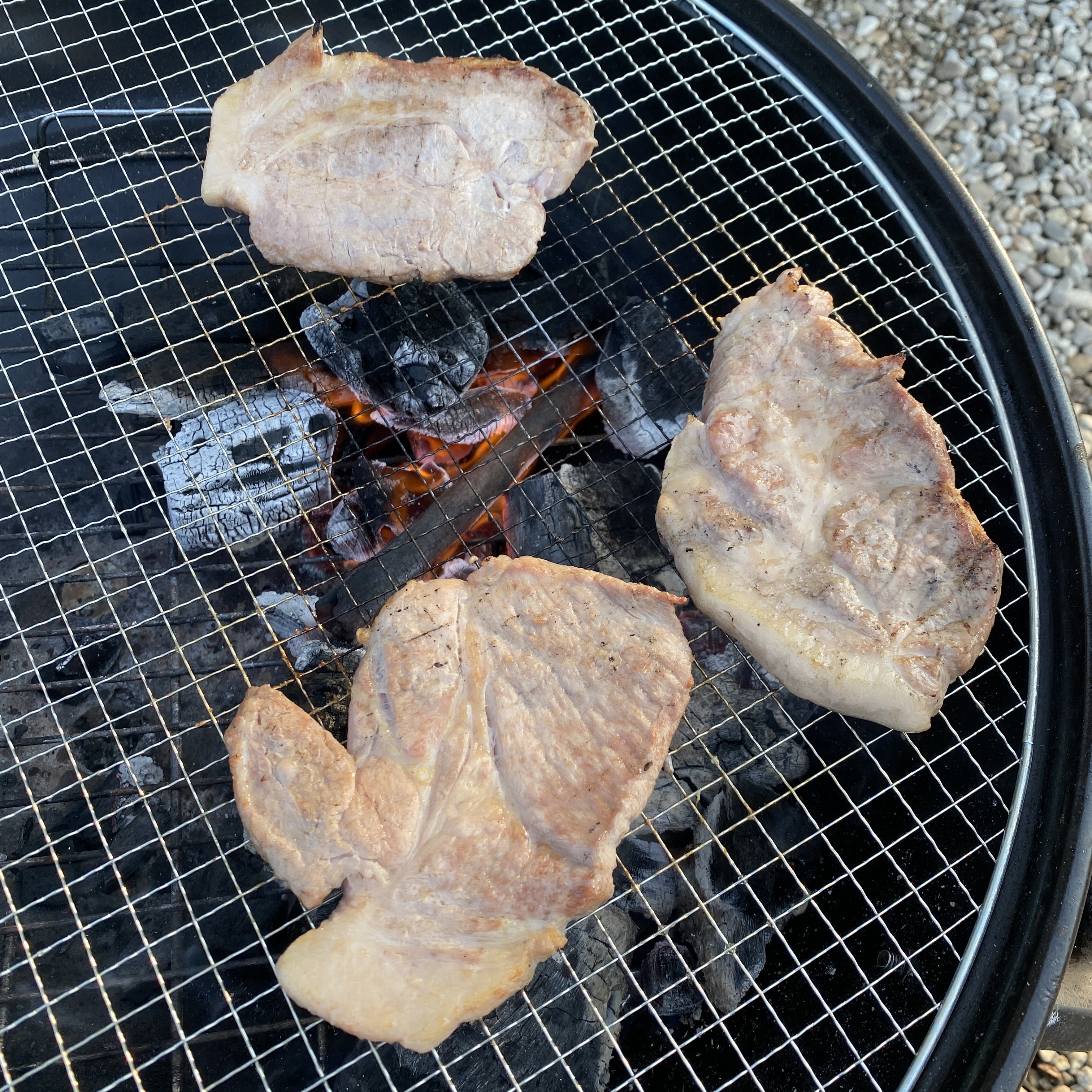 바베큐 그릴도 준비되어 있어서 챙겨간 목살도 맛있게 구워 먹었따.