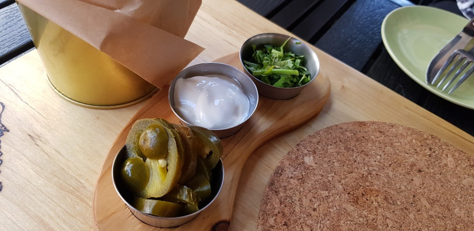 한 쪽 편엔 고수와 샤워크림(?) 그리고 할라피뇨(?)가 있었다.