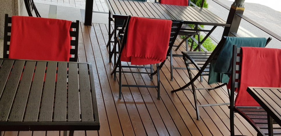 이 날 하필 미세먼지가 쩔었지만, 그래도 햇빛이 좋았기에 밖에서 먹기로 했다.