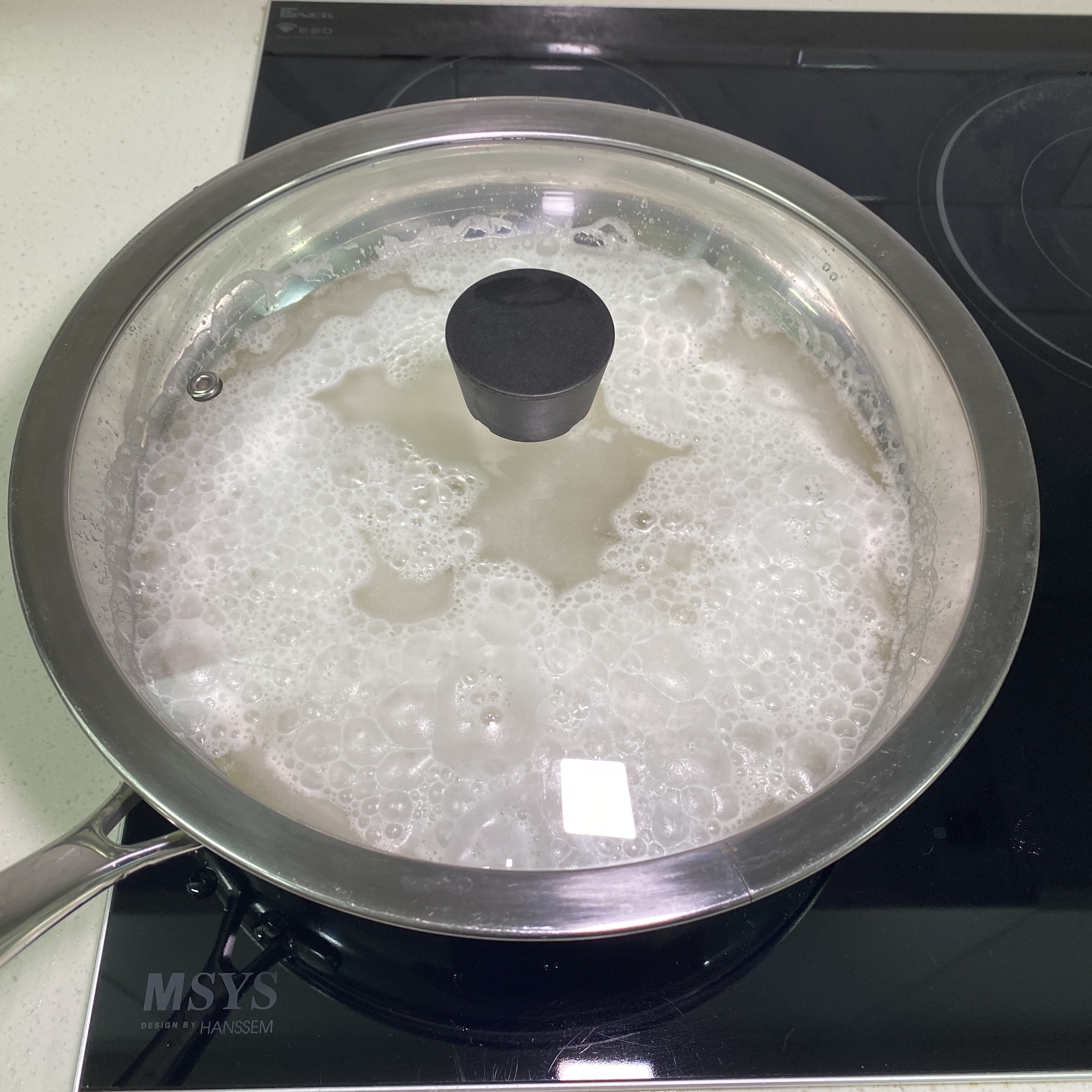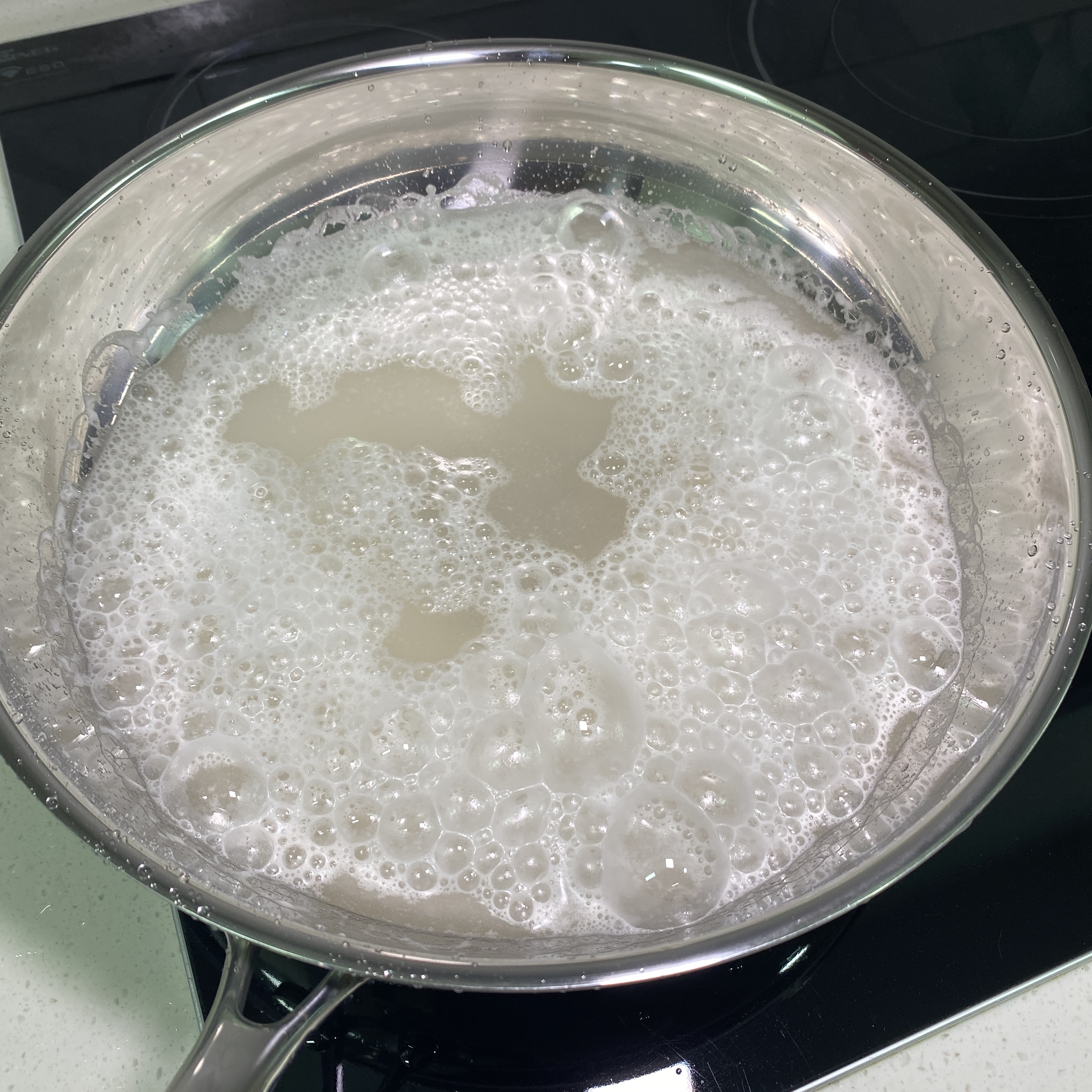 가열하면 처음에는 보글보글 막 끓어오른다.