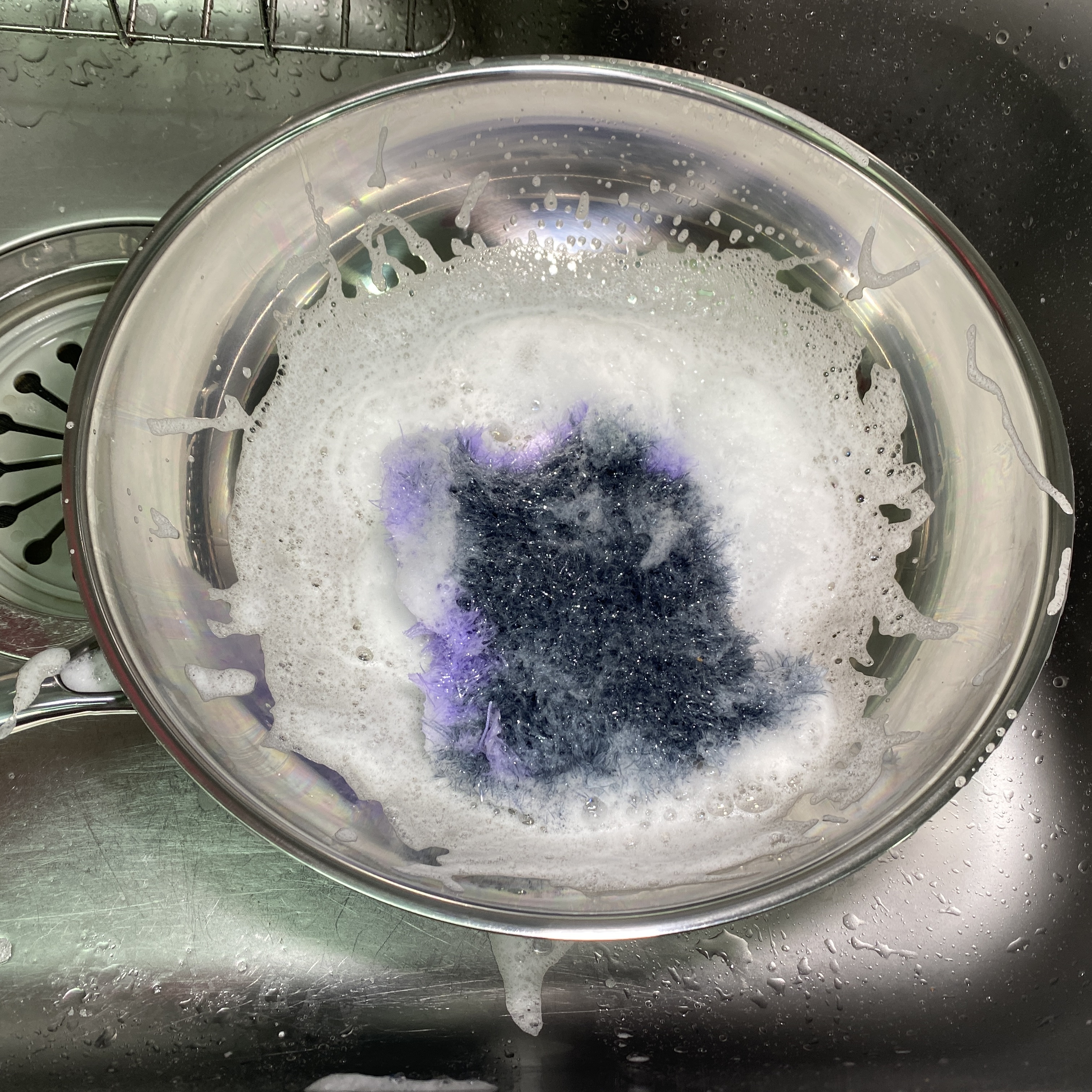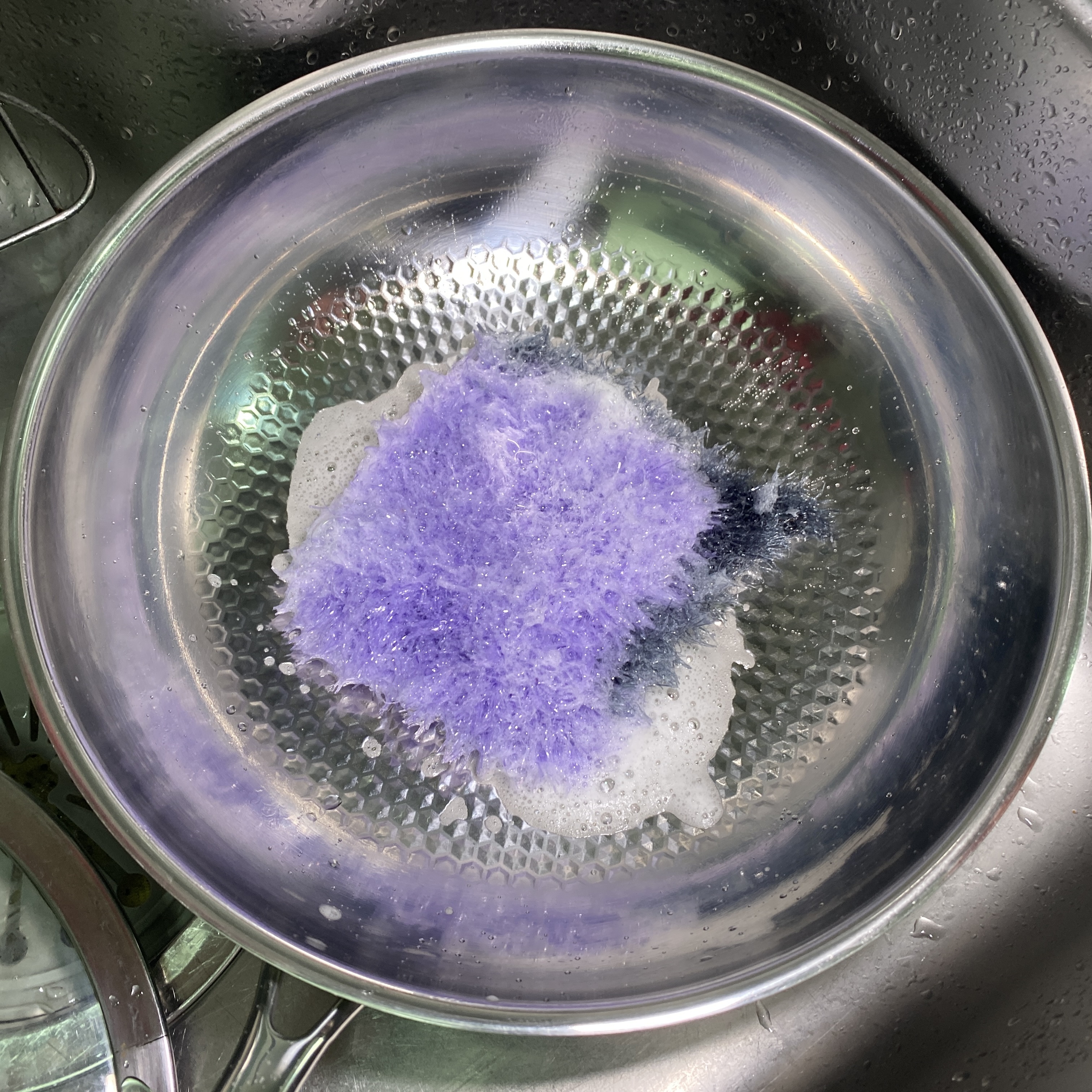 마지막으로 식용유 성분을 닦아내기 위해 설거지를 해주면 연마제 제거 작업은 끝.