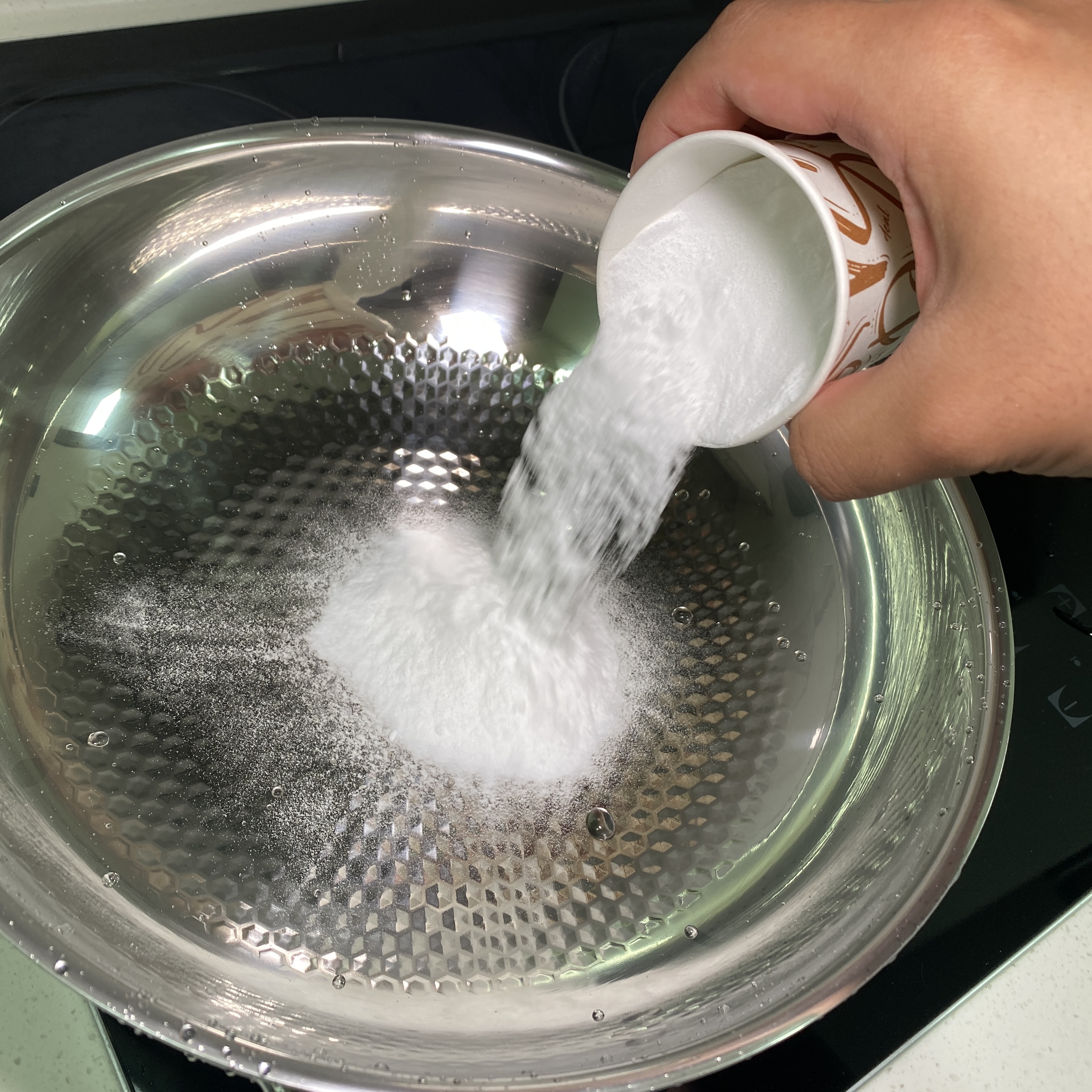 준비한 베이킹소다는 스텐팬에 골고루 뿌려준다.