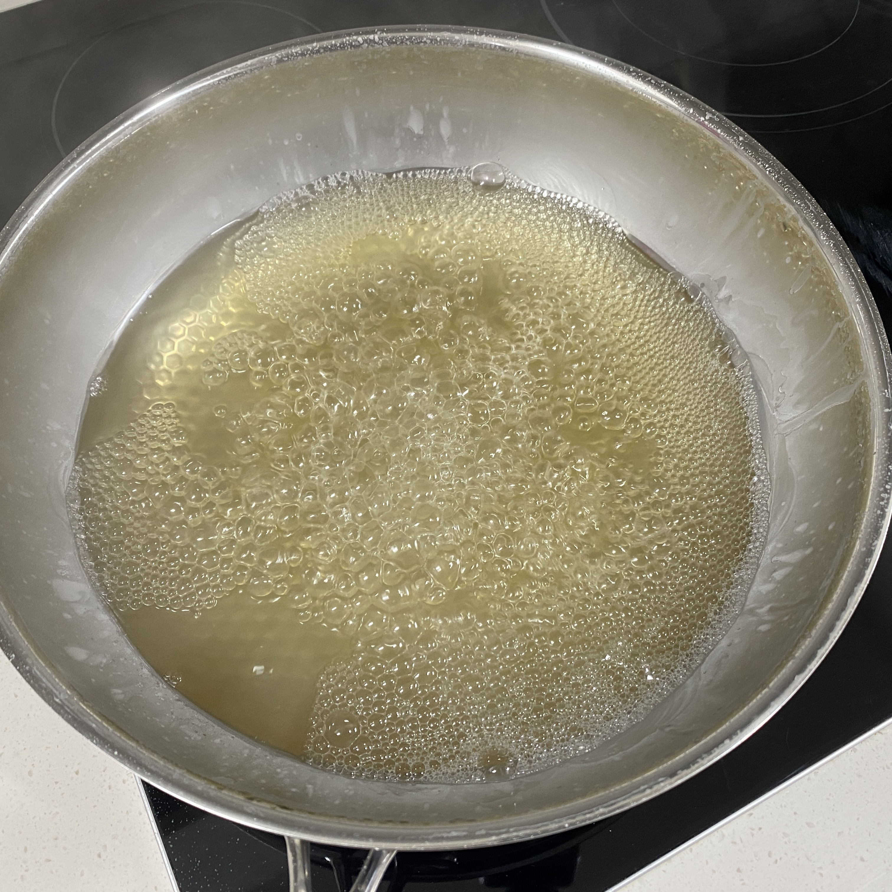 준비물들이 스텐팬에 골고루 잘 뿌려졌다면 이제 가열할 차례다.