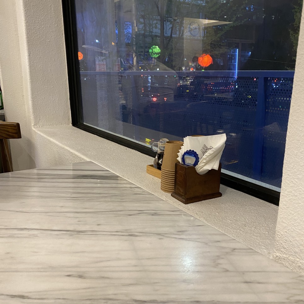 나와 와이프가 선택한 좌석은 창가에 위치한 일반 테이블.
