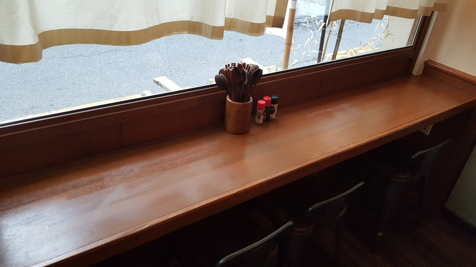 상대방을 마주보고 먹을 수 없어서 살짝 아쉬운 감도 있지만, 나란히 앉아 같은 풍경을 보며 먹는다는 점에선 좀 운치가 있다.