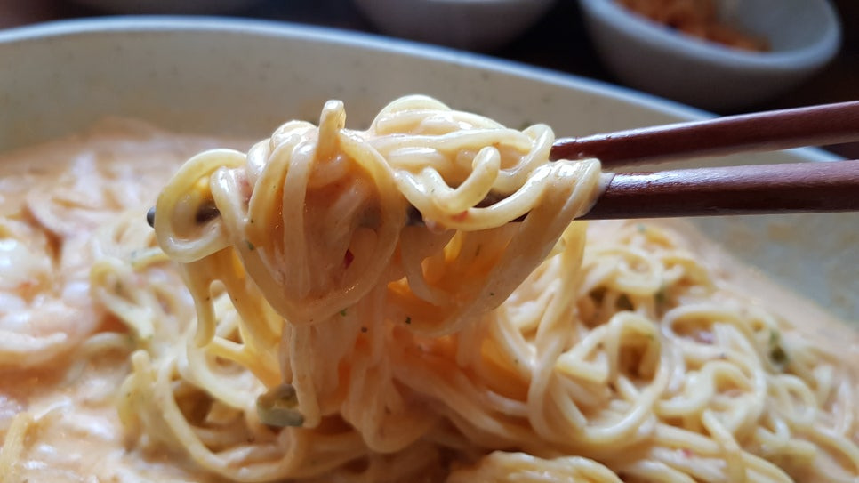 면의 식감은 파스타의 그것과 다르지만, 전체적인 맛은 그랬다.